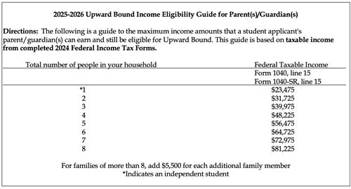 If over income: If the student's family income exceeds the above amounts, their application will still be considered if neither of the custodial parent/guardian's have completed a 4-year (baccalaureate) degree.